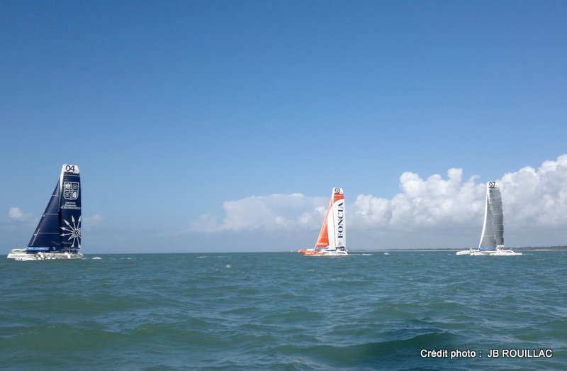 Aujourd'hui, clap de fin pour les 13 technico-commerciaux en formation initiale. Ils viennent de finir cette formation par une semaine d'évaluation en vue de l'attribution des diplômes. (Évaluations en Marketing, Gestion, Informatique, Anglais et soutenance de projet tuteuré). Trois d'entre eux ont été amenés à repasser le "test skipper" ce matin, ils ont ainsi eu la chance de voir naviguer 3 MOD 70.