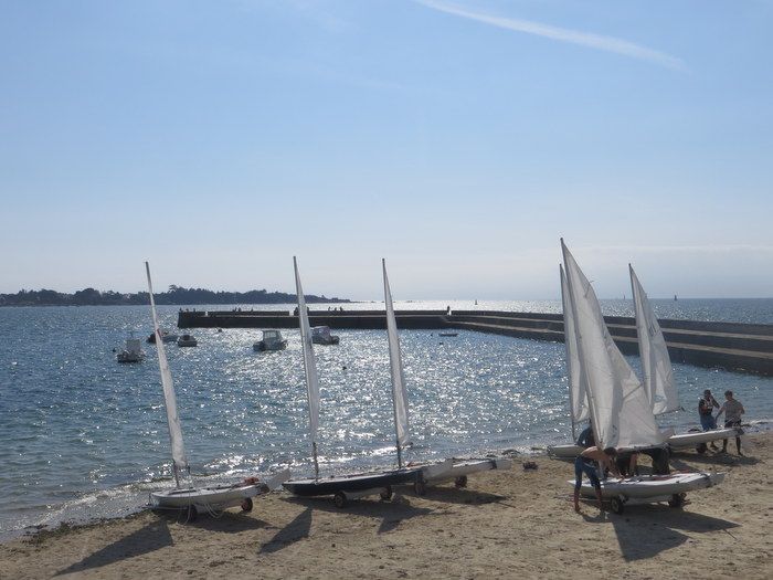 Mer belle, 7 noeuds de vent orienté sud-est, 24°C dans l'air. C'est dans ces conditions que les candidats doivent évoluer. Ils se mettent à l'eau par groupes de 6, pour une courte session au cours de laquelle le jury s'assure de leur aisance sur un Laser.